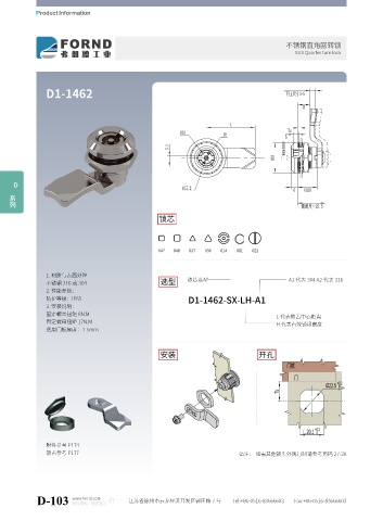 锁舌参考 P177 备注: 如需其他锁头外观订制请参考页码 27-28